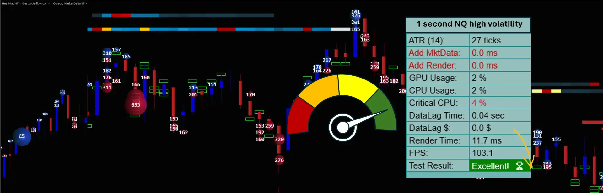 You can conduct a simple speed test yourself using the Deposit Killer indicator to see the real outcome and measure the performance of any indicator, coupled with a Heatmap or any level 2 indicators.