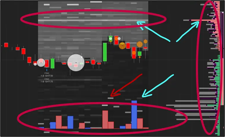 On the other hand, passive orders wait at certain price levels in advance and are visible on passive liquidity indicators such as Heatmap, Depth of Market DOM, Pulling/Staking